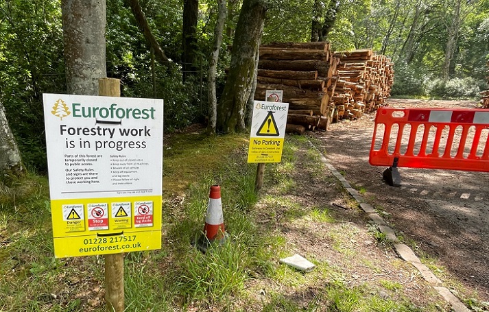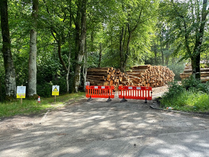 Last week a reader got in touch to say that this public car park has been closed to allow a private forestry company to use it for timber operations.