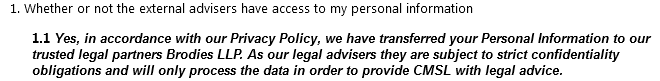 On 03/02/2025 I entered a Subject Access Request or SAR to CM(S)L asking for details of any and all information that they hold on me. This is everybody’s right under the Data Protection Act 2018 and the UK General Data Protection Regulation (UK GDPR). According to the UK Government website on data protection (see here) :