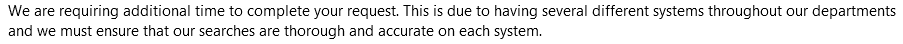 It used to be the case under a former Human Resources manager that Freedom of Information were answered promptly, usually next day and even on one occasion the same day. I spoke to the gentleman about this and he said “ I liked to get those requests out of the way asap but was then told by senior management to delay the responses until the last possible minute”!