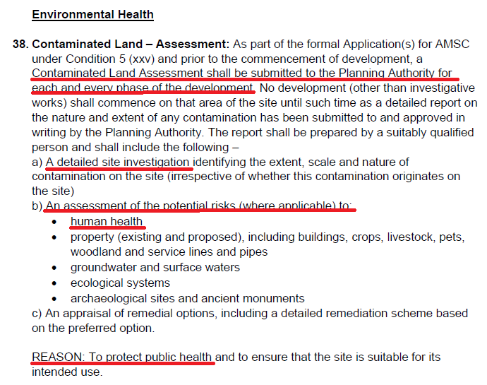It appears that neither Dr Reid nor her staff had read the planning conditions properly or considered the implications of Scottish Ministers removing any requirement for further assessments on the potential impact on human health.