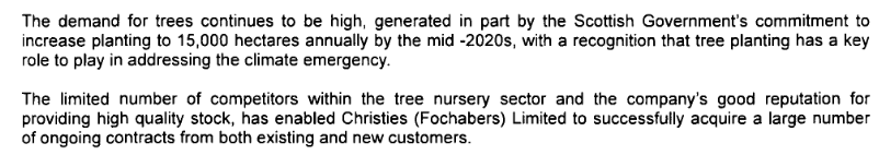 The Directors, however, started warning the firm was in trouble 18 months ago, when I wrote my post. This included claims that they would not have invested £3m in upgrading their facilities over the previous 5 years had they thought Scottish Government grants for tree planting would be cut (see here).