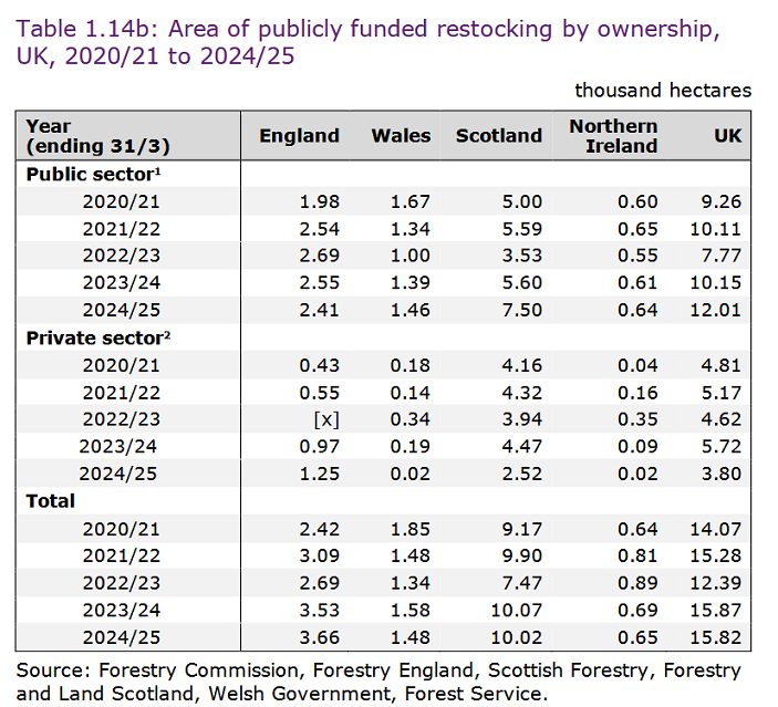 Christies, however, has survived previous periods of volatility and the area of new woodland planted in 2025 (the tree planting year reported is from April to April) is not that much lower than in the years 2021 and 2022 when they were making handsome profits. More new woodland too has been planted since 2020 than any other five year period this century.