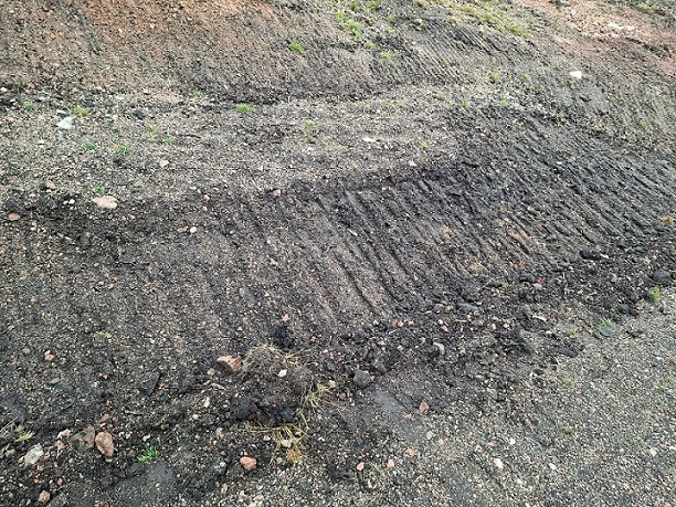 The general public and city investors need to know that when Oxygen Conservation describes work as being of “a high standard”, they apparently include work such as this. Why diggers are still being driven over the hillside, breaking up the ground, mixing mineral and carbon soils, making the surface liable to erosion etc etc is unclear.