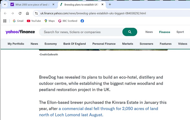 We learn later that the purchase fell through, seemingly very soon after the news reports that BrewDog had bought the 2000 acres.