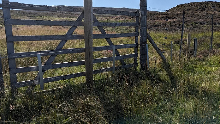 Eagle eyed readers may have noted from the map above that Scottish Forestry and Abrdn only allowed for two gates in over 5km of stock and deer fence. Part of the new stock fence was erected alongside an old unmarked deer fence, a considerable hazard for birds, and there was no requirement from Scottish Forestry either to remove that fence or to protect existing access points. Hence why the stock fence now runs in front of the gate removing a former access point to the moorland.