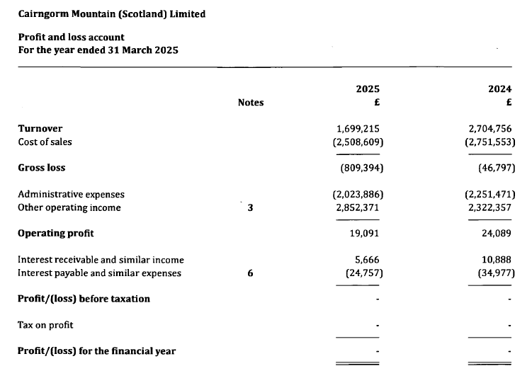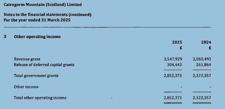 One suspects that CMSL last week did not want either stakeholders or MSPs to know that turnover (i.e income generated) at Cairngorm Mountain had dropped by over £1m and the gross loss increased by over £750,000k. Even more important from a financial perspective, however, are the two lines below the operational loss of £809,384, showing over £2m in administrative expenses and “other operating income” of £2,852,371.