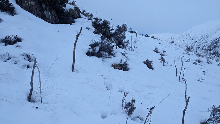 Once down inside the fence and below the upper treeless areas, there were many examples of dead or dying young deciduous trees that had been browsed, These trees may have been planted subsequent to the plantation being established or may represent a period when the plantation had started to regenerate naturally. Whatever the explanation, all the younger and smaller trees are being systematically destroyed by hungry mouths.