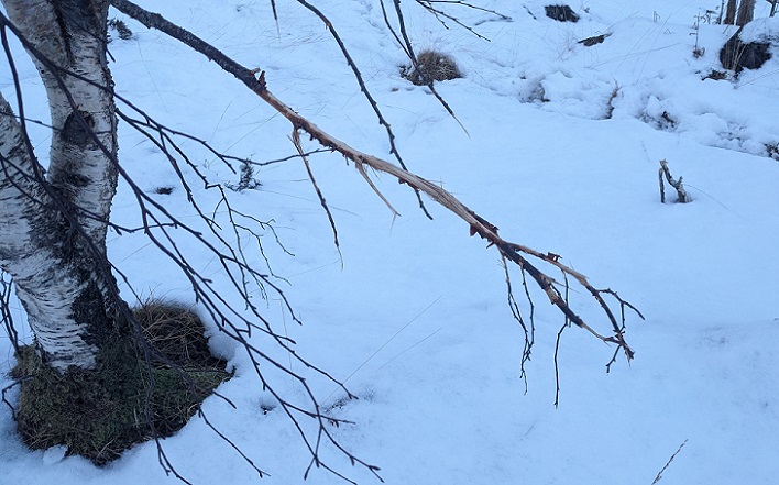 There was also evidence of Red Deer pulling down branches from older trees to chew the bark.
