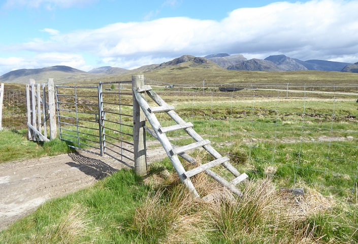 The entrance to the plantation from the A835 is misleading. The gate and section of fence at the southern end of the track were removed long ago (see below). One reason for retaining the gate and fence on the north side may have been to make it harder for red deer to wander onto the road. An estimated average 1,850 collisions between vehicles and deer have taken place in Scotland every year since 2016 (see here).