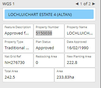 Scottish Forestry’s Map Viewer shows the Altan WGS was approved in 1990, covered a total area of 242.5 ha of which 222.8 ha was planted: