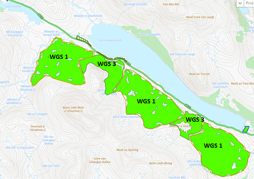 While Scottish Forestry claim that all their records have been destroyed, Scotland’s Environment Viewer provides some further details about the Altan Scheme and its neighbouring WGS 3 scheme. The neighbouring scheme is described as “Assumed Woodland” which begs a number of questions. The pink shows “ground prep”,potentially areas where it was intended to plant on deep peat, the light green areas where broadleaves were planted and the dark green areas where conifers were planted.