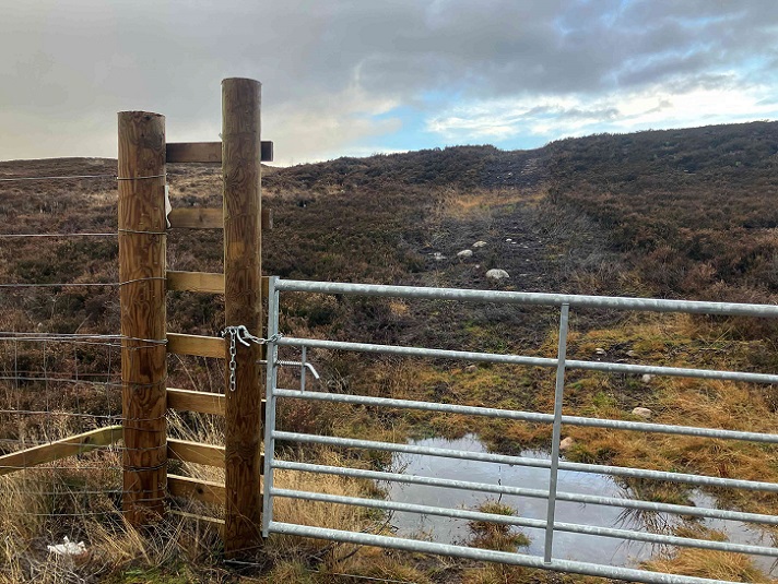 My most recent post on Abrdn’s mismanagement of the Far Ralia estate for carbon offsetting purposes (see here) included this photograph of a new stock fence erected alongside an old deer fence and across this gate making it unusable.  I then notified the responsible manager at Abrdn, who was not aware the gate had been blocked, and reported this to the Cairngorms National Park Authority (CNPA) as an obstruction to access rights.