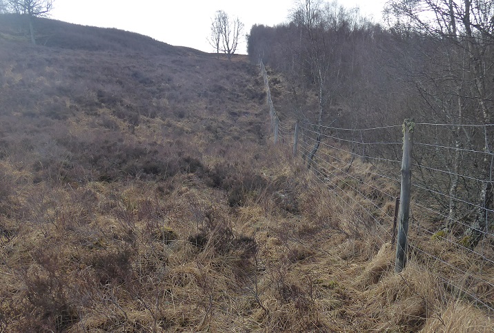 After the Far Ralia planting scheme was approved in 2023, Phoines submitted their own Forestry Grants Scheme application which was approved last year.  The result is that the land on both sides of the newly reinforced section of deer fence is now being used for woodland creation: