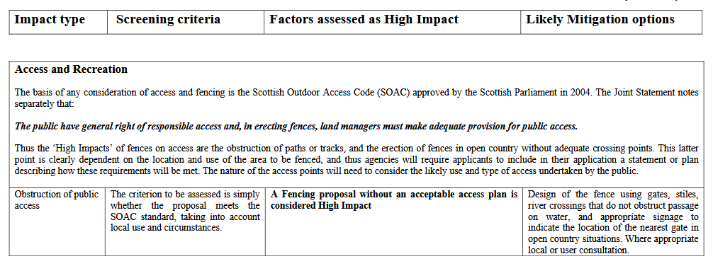This Guidance emphasises that “A Fencing proposal without an acceptable access plan is considered High Impact”.