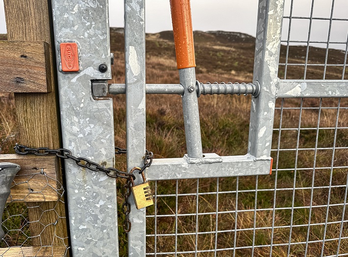 Two gates within that “strategically position deer fence” along the boundary with Pitmain, presumably funded by Scottish Forestry and intended to provide access to the public, are now locked:
