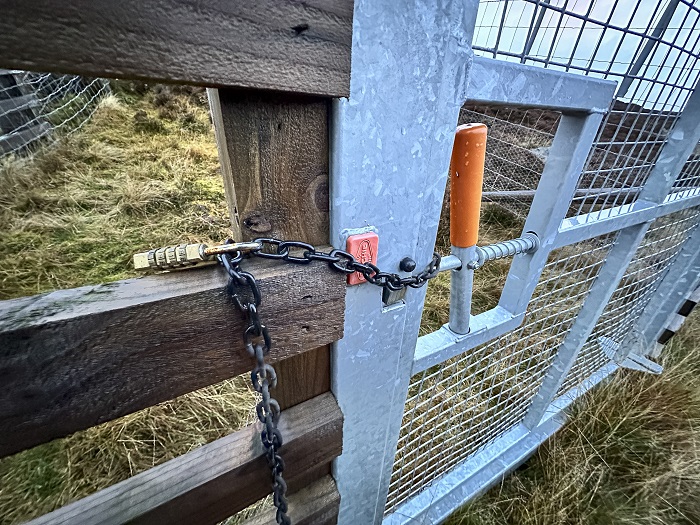 Gate 1 with Combination Padlock.  Note the chicken wire on the wooden section of fence to the left making it very hard to climb over.  Photo credit Parkswatch reader.